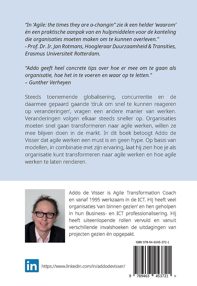 “In ‘Agile, the times they are a-changin’’ zie ik een helder ‘waarom’ én een praktische aanpak van en hulpmiddelen voor de kanteling die organisaties moeten maken om te kunnen overleven.”