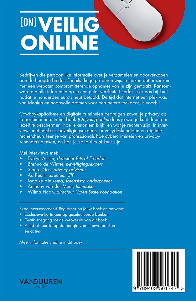 Cowboykapitalisme en digitale criminelen bedreigen zowel je privacy als je portemonnee. In het boek (On)veilig online lees je wat je kunt doen om jezelf te beschermen, hoe je anoniem blijft, en wat je rechten zijn. In interviews met hackers, beveiligingsexperts, privacydeskundigen en digitale rechercheurs leer je van professionals hoe cybercriminelen en privacyschenders denken, en hoe je ze te slim af kunt zijn.