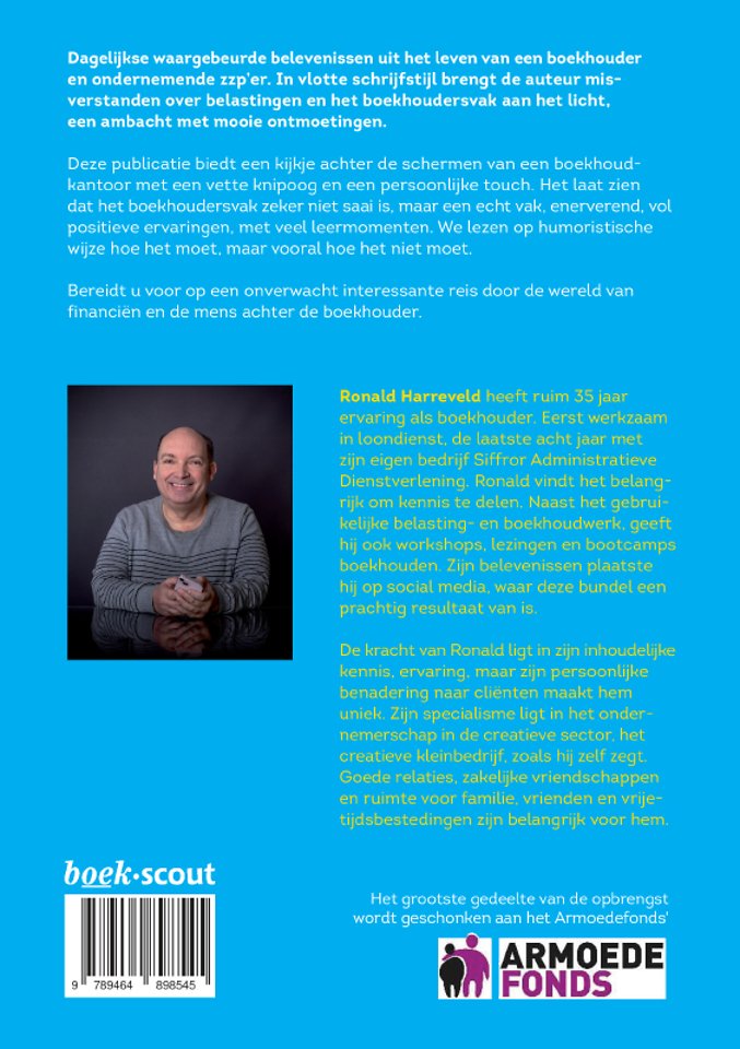 Dagelijkse waargebeurde belevenissen uit het leven van een boekhouder en ondernemende zzp’er. In vlotte schrijfstijl brengt de auteur misverstanden over belastingen en het boekhoudersvak aan het licht, een ambacht met mooie ontmoetingen.