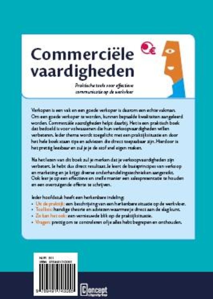 Meer over Johan van KootenVerkopen is een vak en een goede verkoper is daarom een echte vakman. Om een goede verkoper te worden, kunnen bepaalde kwaliteiten aangeleerd worden. Commerciële vaardigheden helpt daarbij. Het is een praktisch boek dat bedoeld is voor volwassenen die hun verkoopvaardigheden willen verbeteren.