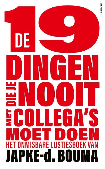 Het leukste boek uit het lijstje is 'Het onmisbare lijstjesboek, de 19 dingen die je nooit met collega's moet doen'. Het boek bevat scala's aan lijstjes die goede gespreksonderwerpen zijn tijdens de borrel of de (lunch)pauzes. De lijstjes zijn erg herkenbaar en in veel gevallen grappig. Het zijn zeer diverse lijstjes, bijvoorbeeld op onderwerp, zoals solliciteren, vergaderingen en functioneringsgesprekken. Maar er zijn ook woordgerelateerde lijstjes, zoals 15 synoniemen voor governance. Jeukwoorden op LinkedIn is zo herkenbaar: het werkwoord mogen, tijd voor een volgende stap, ongelooflijk hoe wij op LinkedIn schrijven (overigens betrap ik mezelf er nu ook regelmatig op). Het boek heeft ook een serieuze ondertoon. Hoewel de meeste lijstjes informatief en humoristisch zijn, gaat Bouma onder andere in op de woningnood (waarom staan al die kantoren leeg, nu blijkt dat thuiswerken de nieuwe norm is en best goed werkt?) en seksisme. Dit was nog voordat de schandalen zoals The Voice en Ajax naar buiten kwamen.