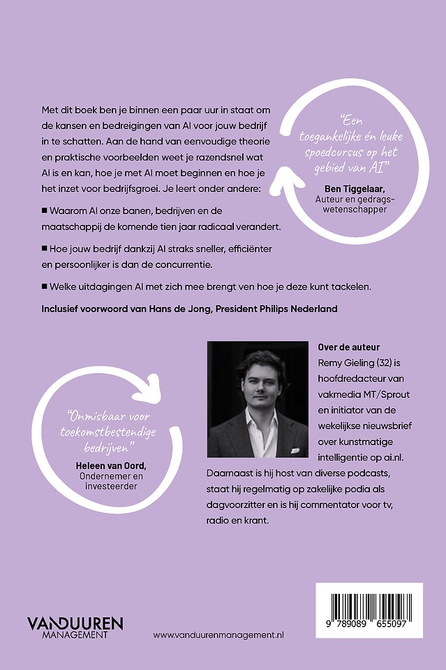 Je leert onder meer hoe vernieuwende organisaties als Picnic, Salesforce, maar ook de Gemeente Amsterdam kunstmatige intelligentie vandaag de dag al in de praktijk toepassen. Een boek ondernemers, leiders en professionals die hun bedrijf klaar willen stomen voor de toekomst.