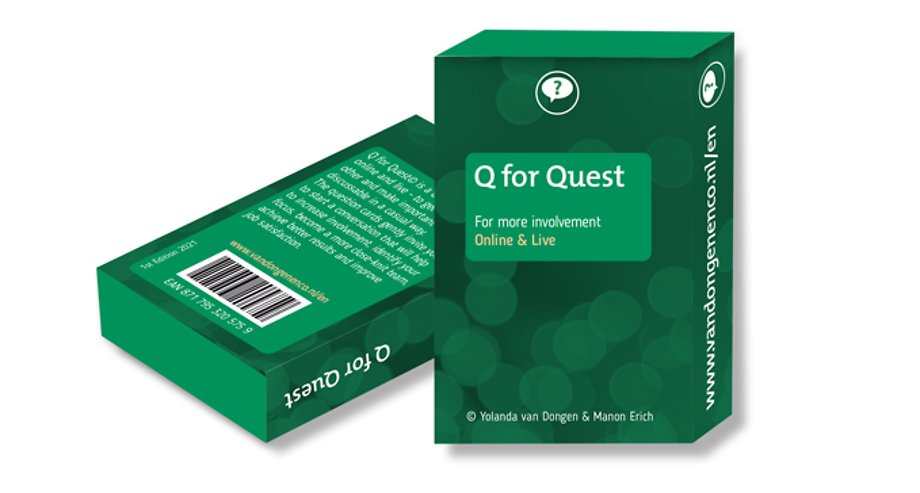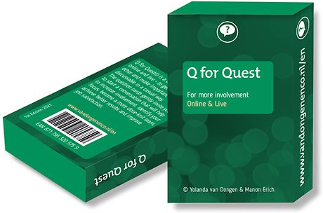 'Q for Quest©' is a useful tool to facilitate good conversations. In an accessible way, it invites players to start a meaningful conversation. But be careful: it might just lead to better focus, increased awareness, a more close-knit team, better results and more enjoyment in your work together.