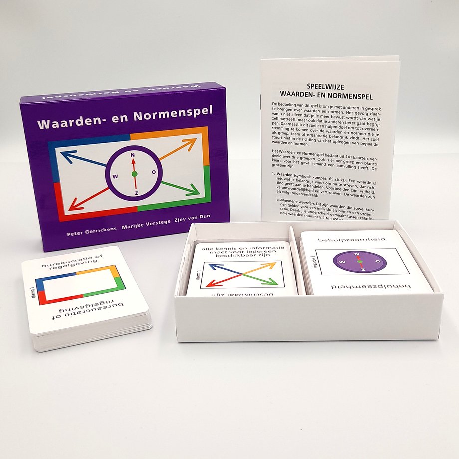 Als je van plan bent het spel in uiteenlopende situaties in groepen of teams te gaan gebruiken, is het raadzaam ook de ringband 'Handleiding Waarden- en Normenspel' aan te schaffen. Je vindt daarin 20 spelvormen en uitgebreide achtergrondinformatie.